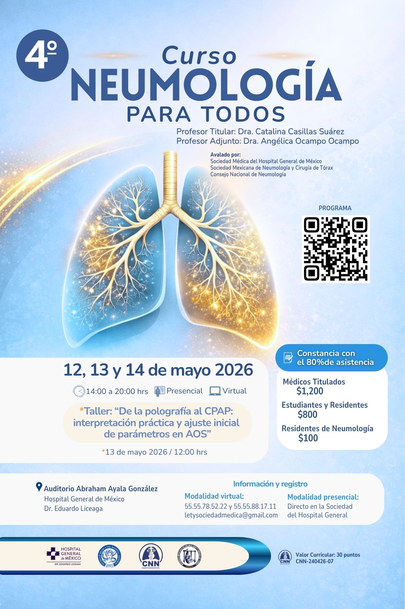 La Sociedad Mexicana de Neumología y Cirugía de Tórax invita a profesionales de la salud, estudiantes y residentes a participar en el 4° Curso: Neumología para Todos, un espacio académico diseñado para fortalecer conocimientos fundamentales y actualizarse en temas clave de la práctica neumológica.